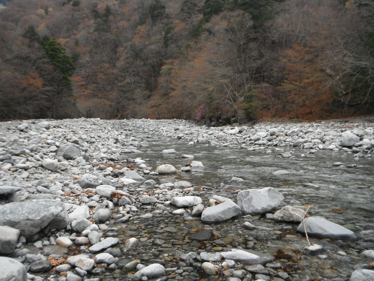 西沢渓谷は落差の小さい落ち込みと瀬が連続する開けた流れで、フライフィッシング向きだと思います。